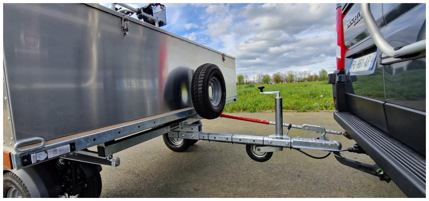 Remorque transversale à roues pivotantes pour les marches arrière. Inclus : biellette; plaque de biellette non posée.
