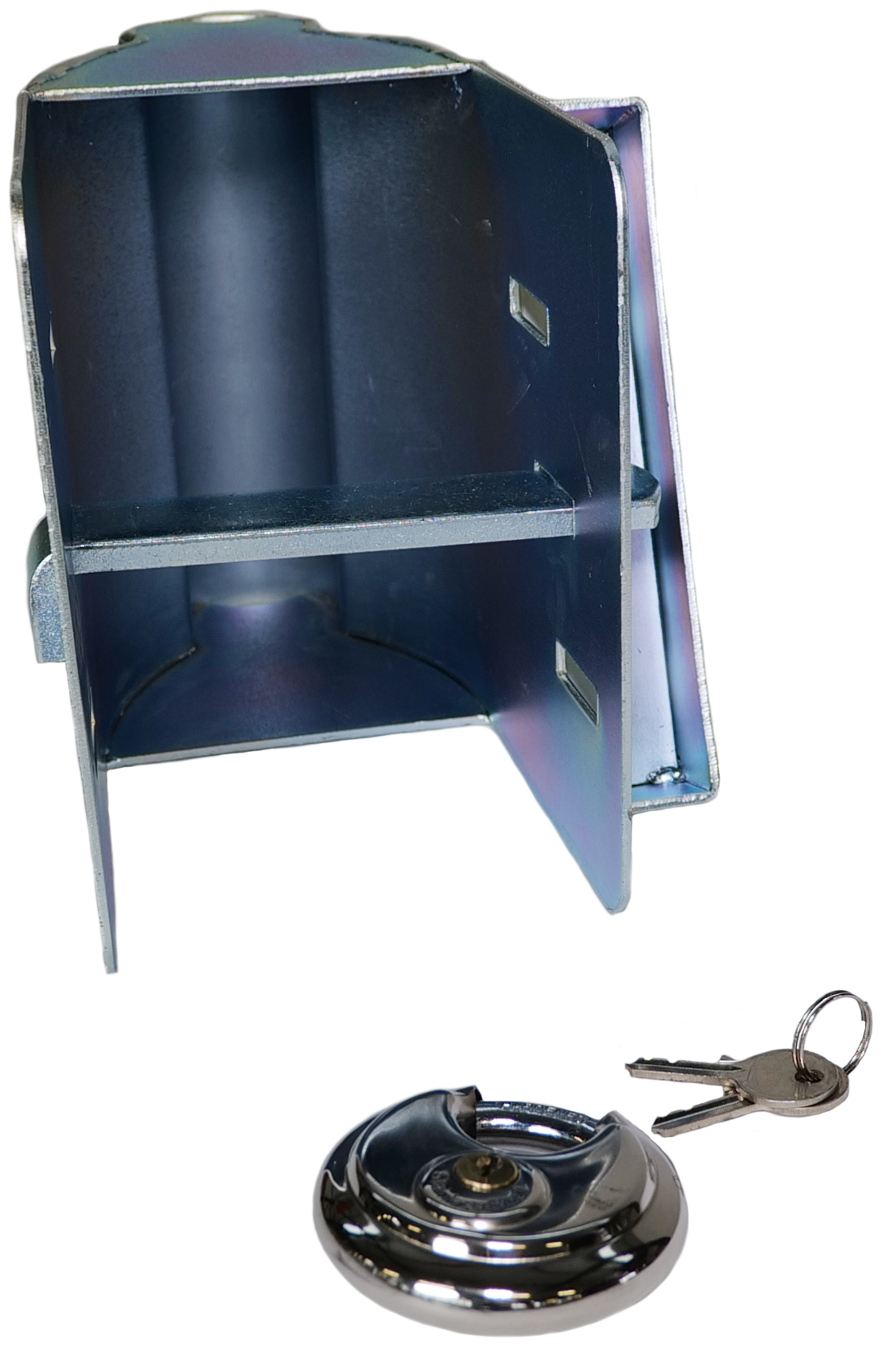 L'antivol coiffant permet de bloquer l'attelage soit en stationnement soit en étant attelé au véhicule. Pour tous les modèles d'attelage. Livré avec cadenas.
